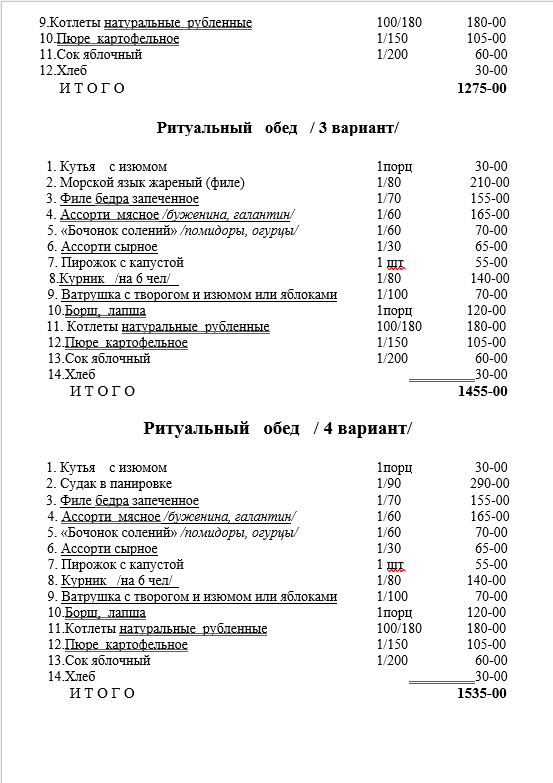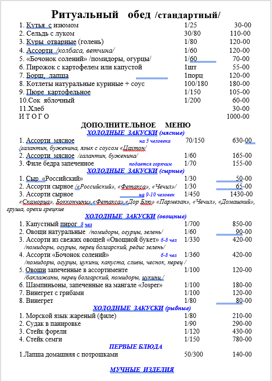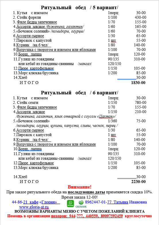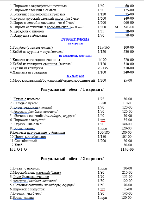 Варианты ритуального меню применительно к любому бюджету!